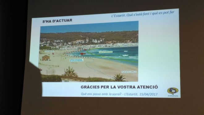 Les intervenants ont expliqué, d’une manière très compréhensible, les risques, la vulnérabilité de la zone et le danger existant pour les biens et les personnes. Ils ont fourni des données sur la dynamique côtière et leur évolution au cours des dernières années dans la zone de L’Estartit et Els Griells. Ils ont rapporté la fragilité de l’équilibre de la zone et la nécessité de prendre des mesures à court et à moyen terme.