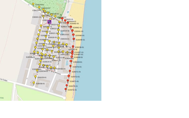 Se nos han entregado dos planos donde aparecen en rojo las luminarias que se cambiarán próximamente. Además nos indican que pondrán algún otro punto de luz donde hace falta y sustituirán algunos que no funcionan.